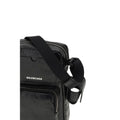 The Superbusy Vertical Shoulder Bag by Balenciaga is a contemporary and functional accessory, crafted from black Arena lambskin with antique silver-tone hardware. The vertical crossbody design is enhanced by an adjustable strap and the embossed Balenciaga logo with silver foil on the front. It features a zip closure, one main compartment, a front zip pocket, a card slot, and a side case for AirPods Pro 3. The side hook and BB logo engraved on the zipper pull complete the design.