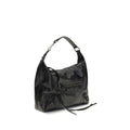 The small Le City hobo Shoulder Bag by Balenciaga combines elegance and practicality in a compact and versatile design. Made from soft lambskin leather, it features a handle and an adjustable and removable strap for shoulder, crossbody, or hand carry. Brass hardware and a front zip pocket with knotted pull highlight the iconic style. The interior includes a main compartment and a zip pocket, ideal for everyday use.
